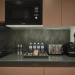 The suite features a separate bedroom and a spacious living room, a flat screen TV with cable channels, complemented by city views and a private balcony. A fully equipped kitchen includes a stovetop, refrigerator, dishwasher, washing machine, complete kitchenware and tea and coffee making facilities. The elegant bathroom offers a walk in shower and complimentary toiletries. Additional amenities include air conditioning, complimentary WiFi and soundproofing, ideal for both short and extended stays.
